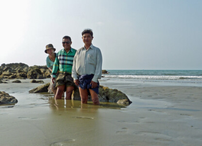 Am nächsten Tag organisierte Zaw Min Oo Motorräder und für mich einen Fahrer dazu. Wir machten einen Tagesausflug an die Küste, fuhren entlang der Südspitze auf dem nicht endenden Strand, besuchten die Maw Tin Soon Pagode und staunten über die wunderschöne Bucht mit dem hier silbern glitzernden Sand.