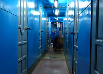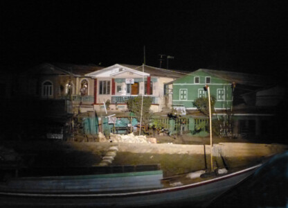 Im Nachtschiff gab es Massenlager und Kabinen. Die Ausstattung war eine dünne Matte und ein Kissen. Viel geschlafen habe ich sowieso nicht, denn es war unglaublich spannend, in völliger Dunkelheit auf dem Fluss unterwegs zu sein. Ab und zu drosselte das Schiff die Motoren und von irgendwoher kam dann ein kleines Boot, das Waren abholte.